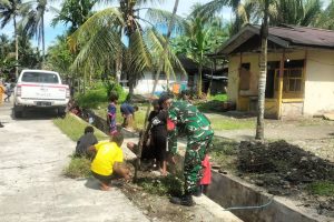 Tumbuhkan Hidup Sehat dan Lingkungan Bersih, Babinsa Koramil Mapurujaya Ajak Warga Bersihkan Parit